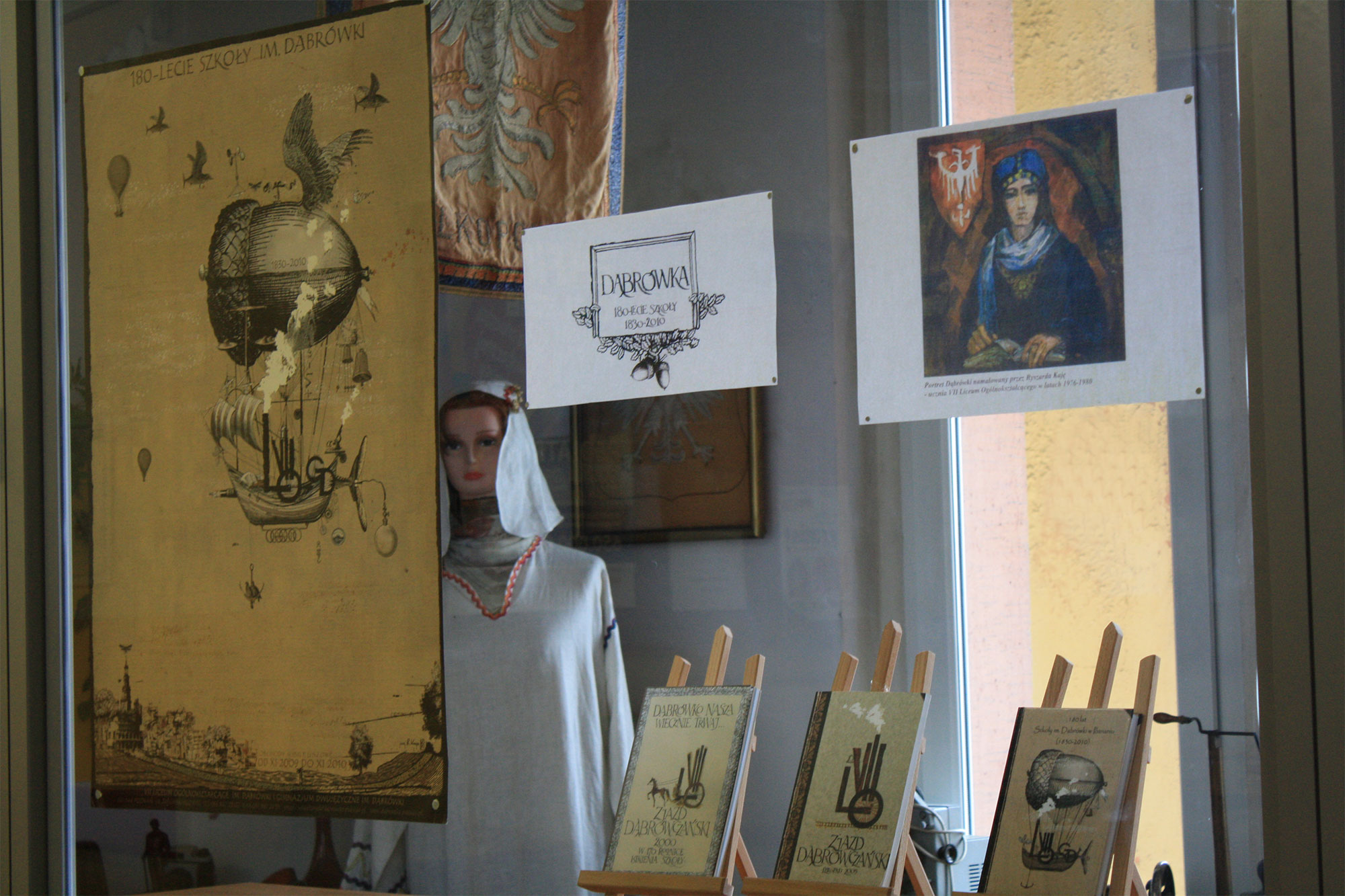Gdy 1 września 1967 roku do Dąbrówki zawitali pierwsi chłopcy i szkoła została przemianowana na liceum koedukacyjne, istniejący sztandar utracił swą aktualność. Od tego momentu, przez okres sześciu lat, Dąbrówka nie posiadała własnego symbolu szkoły. Konkurs na nowy projekt sztandaru ogłoszono dopiero w 1973 roku. Na konkurs wpłynęły cztery projekty. Jury w składzie Danuta Gazińska i Władysław Marciuk dokonało oceny przedstawionych prac. Zwycięzcą konkursu został Marek Polski, uczeń z klasy IVa, gdyż jedynie jego praca spełniała warunki konkursu. Pozostali uczestnicy, Paweł Stępniowski i Longin Pawłowski, otrzymali wyróżnienia. Na uroczystości wręczenia nagród obecna była dyrektorka Zofia Dąbek i przedstawiciele komitetu rodzicielskiego.